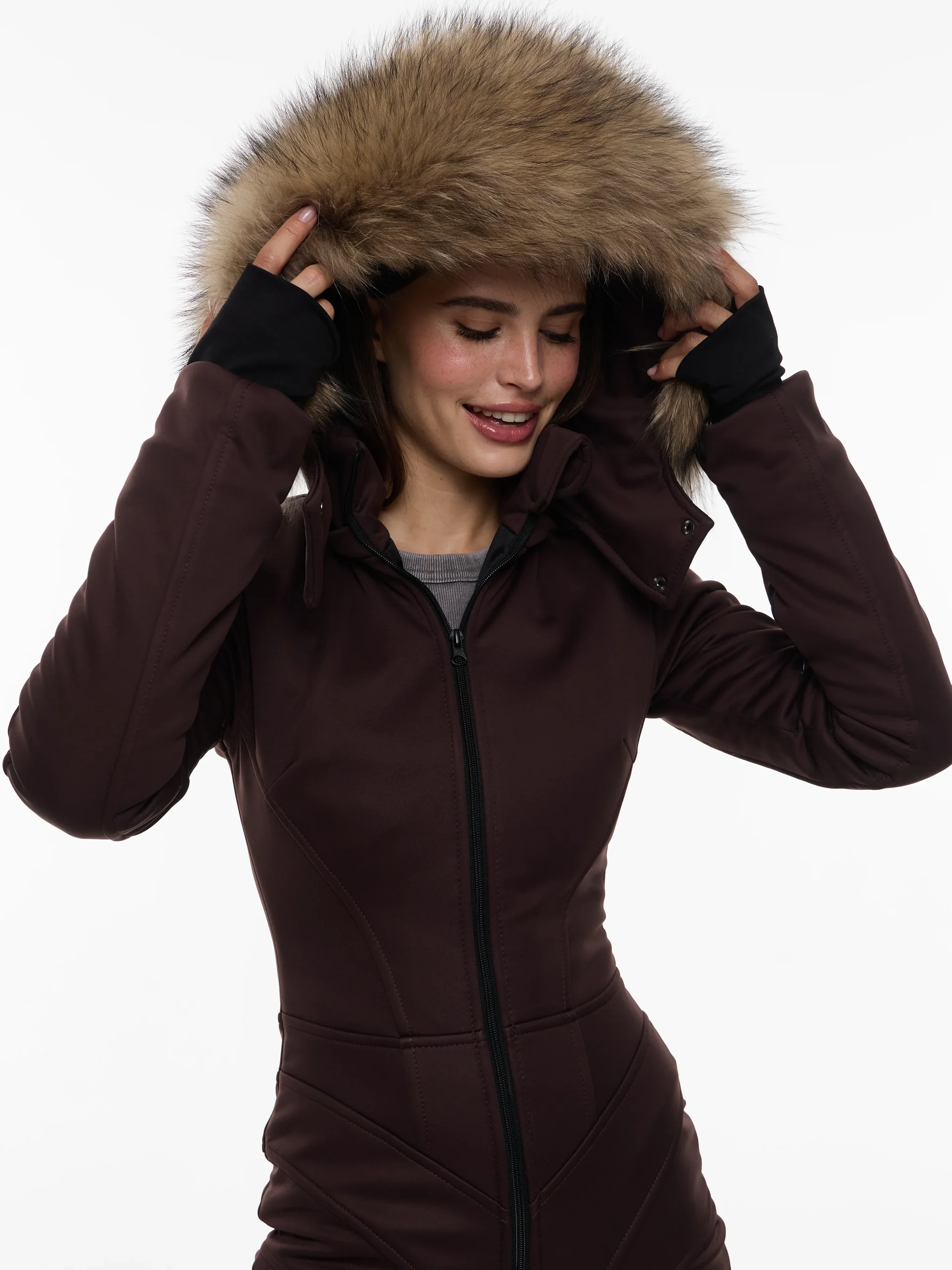 Женский зимний комбинезон из софтшелла Шоколадный